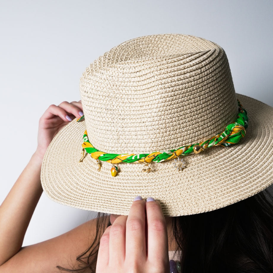 Our Paisley Bandana straw hats are crafted for comfort and style—lightweight and breathable to keep you cool under the sun. Each hat features soft bandana ties and delicate metal charms for an added touch of personality. Perfect for beach days, festivals, or everyday wear, these hats offer shade with a relaxed, boho feel.